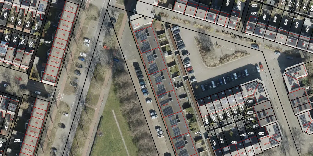 Het perceel waarop D.D. Eisenhowerstraat 60 staat heeft een oppervlakte van 2565 m². Dit is een zeer groot perceel. De perceeloppervlakte wordt geregistreerd door het Kadaster. Gedetailleerde informatie over de maten van dit perceel kunt u vinden in het rapport Kadastrale kaart met maatvoering van D.D. Eisenhowerstraat 60.