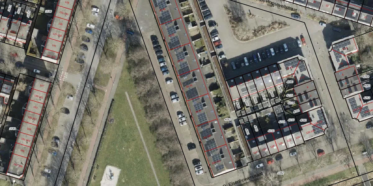 Het perceel waarop D.D. Eisenhowerstraat 70 staat heeft een oppervlakte van 2565 m². Dit is een zeer groot perceel. De perceeloppervlakte wordt geregistreerd door het Kadaster. Gedetailleerde informatie over de maten van dit perceel kunt u vinden in het rapport Kadastrale kaart met maatvoering van D.D. Eisenhowerstraat 70.