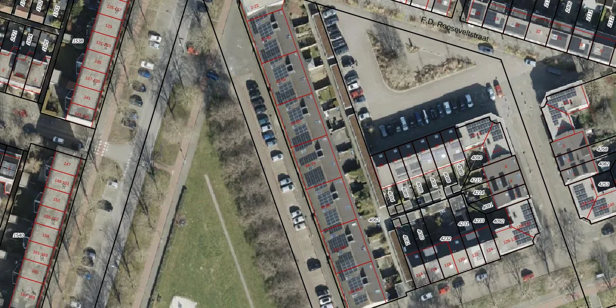 Het perceel waarop D.D. Eisenhowerstraat 72 staat heeft een oppervlakte van 2565 m². Dit is een zeer groot perceel. De perceeloppervlakte wordt geregistreerd door het Kadaster. Gedetailleerde informatie over de maten van dit perceel kunt u vinden in het rapport Kadastrale kaart met maatvoering van D.D. Eisenhowerstraat 72.
