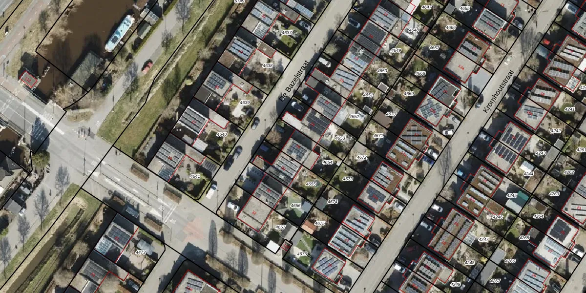 Gebruik de zoekbalk of klik op een perceel voor informatie over de adressen binnen dit perceel.