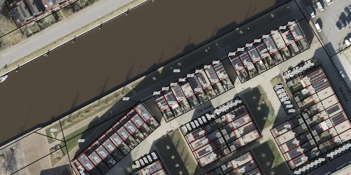 Het perceel waarop De Kaai 165 staat heeft een oppervlakte van 90 m². Dit is een klein perceel. De perceeloppervlakte wordt geregistreerd door het Kadaster. Gedetailleerde informatie over de maten van dit perceel kunt u vinden in het rapport Kadastrale kaart met maatvoering van De Kaai 165.