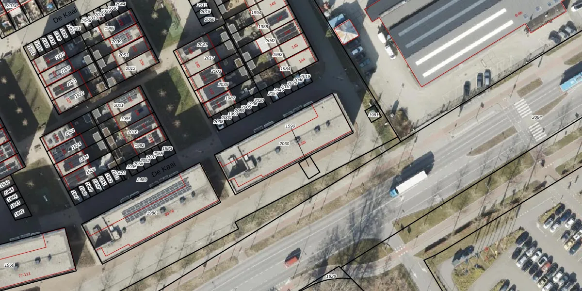 Het perceel waarop De Kaai 20 staat heeft een oppervlakte van 708 m². Dit is een groot perceel. De perceeloppervlakte wordt geregistreerd door het Kadaster. Gedetailleerde informatie over de maten van dit perceel kunt u vinden in het rapport Kadastrale kaart met maatvoering van De Kaai 20.