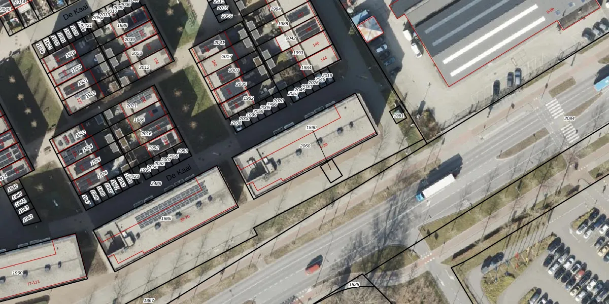 De Kaai 21 is gelegen op kadastraal perceel GNG00P2060. Deze kadastrale aanduiding is uniek en wordt gebruikt door het Kadaster om eigendomsrechten en andere zakelijke rechten vast te leggen. Het perceel maakt onderdeel uit van de kadastrale gemeente Groningen.