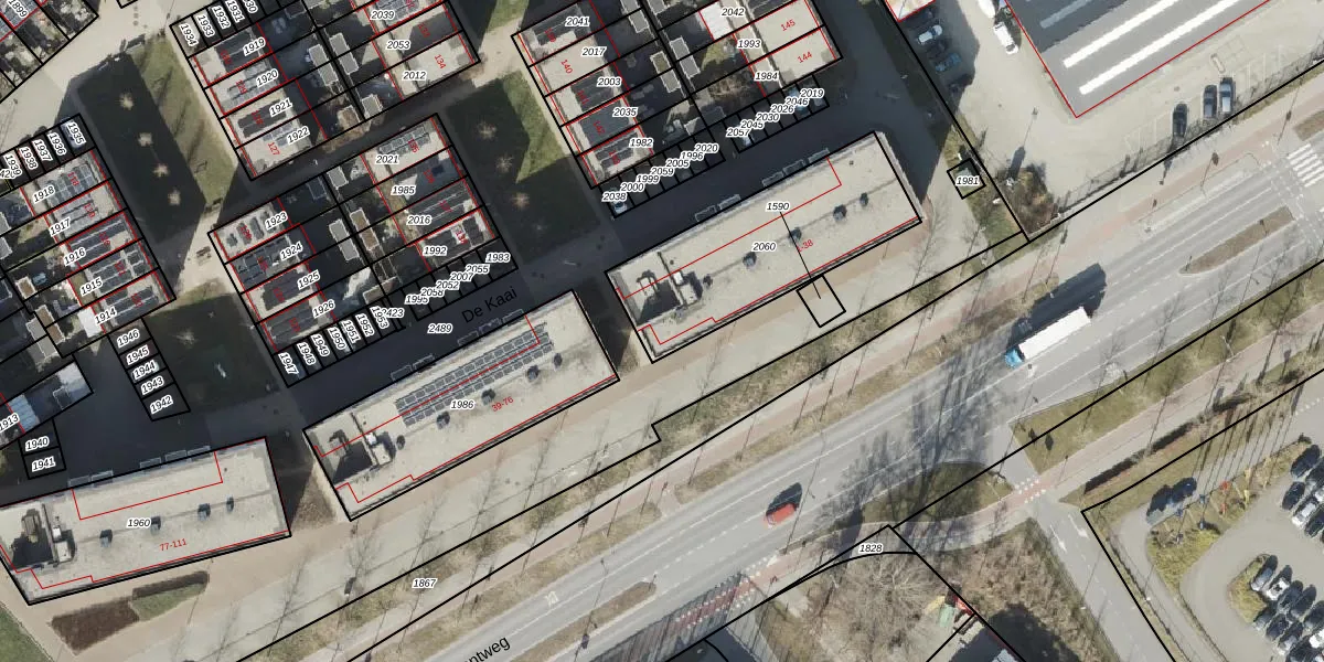 Het perceel waarop De Kaai 38 staat heeft een oppervlakte van 708 m². Dit is een groot perceel. De perceeloppervlakte wordt geregistreerd door het Kadaster. Gedetailleerde informatie over de maten van dit perceel kunt u vinden in het rapport Kadastrale kaart met maatvoering van De Kaai 38.
