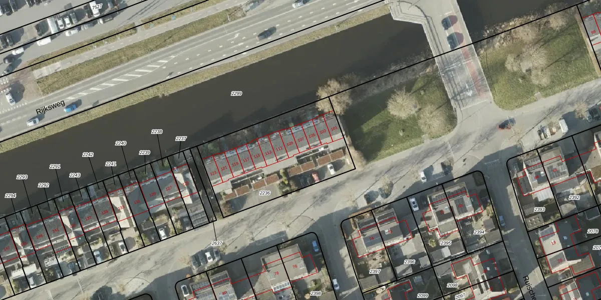 Het perceel waarop De Waard 107 staat heeft een oppervlakte van 1195 m². Dit is een zeer groot perceel. De perceeloppervlakte wordt geregistreerd door het Kadaster. Gedetailleerde informatie over de maten van dit perceel kunt u vinden in het rapport Kadastrale kaart met maatvoering van De Waard 107.