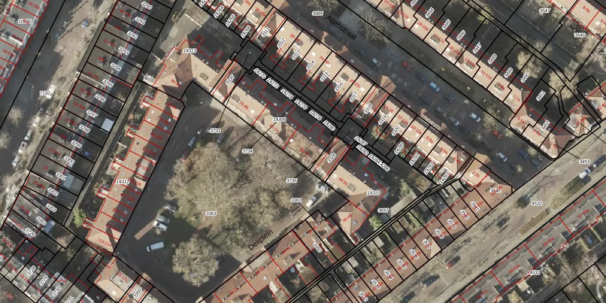 Het perceel waarop Deliplein 63 staat heeft een oppervlakte van 541 m². Dit is een groot perceel. De perceeloppervlakte wordt geregistreerd door het Kadaster. Gedetailleerde informatie over de maten van dit perceel kunt u vinden in het rapport Kadastrale kaart met maatvoering van Deliplein 63.