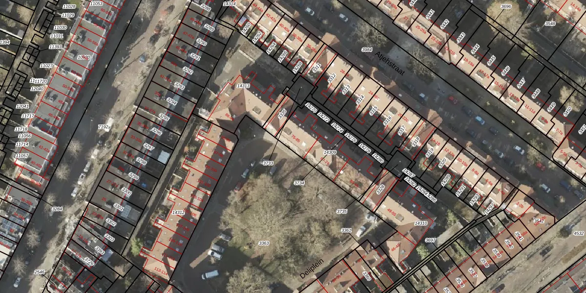 Het perceel waarop Deliplein 79 staat heeft een oppervlakte van 541 m². Dit is een groot perceel. De perceeloppervlakte wordt geregistreerd door het Kadaster. Gedetailleerde informatie over de maten van dit perceel kunt u vinden in het rapport Kadastrale kaart met maatvoering van Deliplein 79.