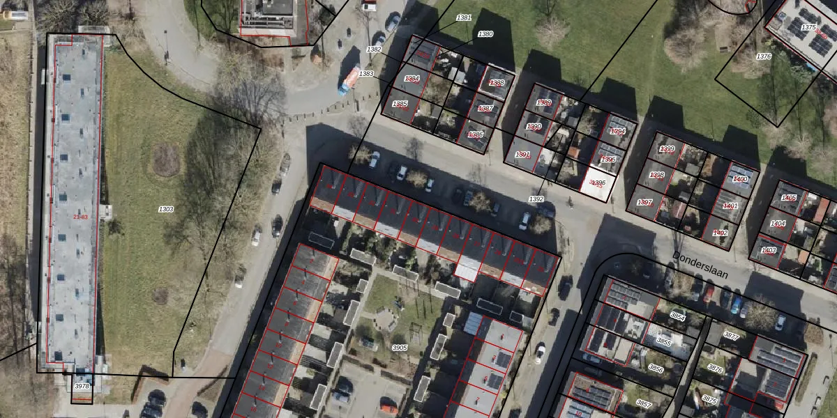 Het perceel waarop Donderslaan 30 staat heeft een oppervlakte van 5608 m². Dit is een zeer groot perceel. De perceeloppervlakte wordt geregistreerd door het Kadaster. Gedetailleerde informatie over de maten van dit perceel kunt u vinden in het rapport Kadastrale kaart met maatvoering van Donderslaan 30.