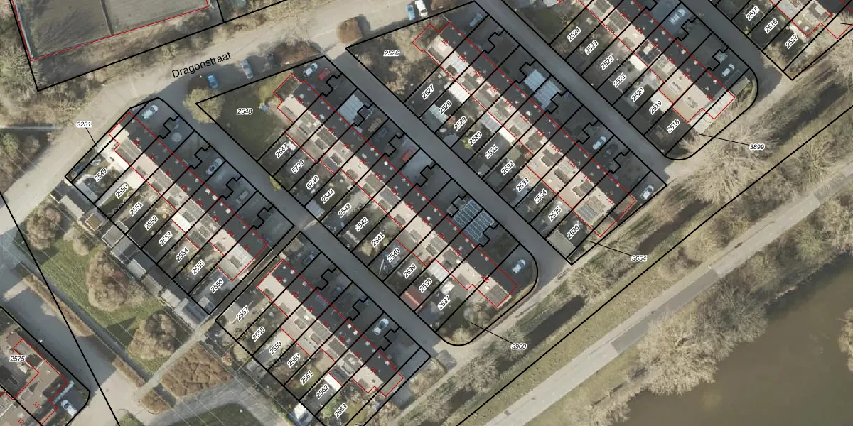 Gebruik de zoekbalk of klik op een perceel voor informatie over de adressen binnen dit perceel.