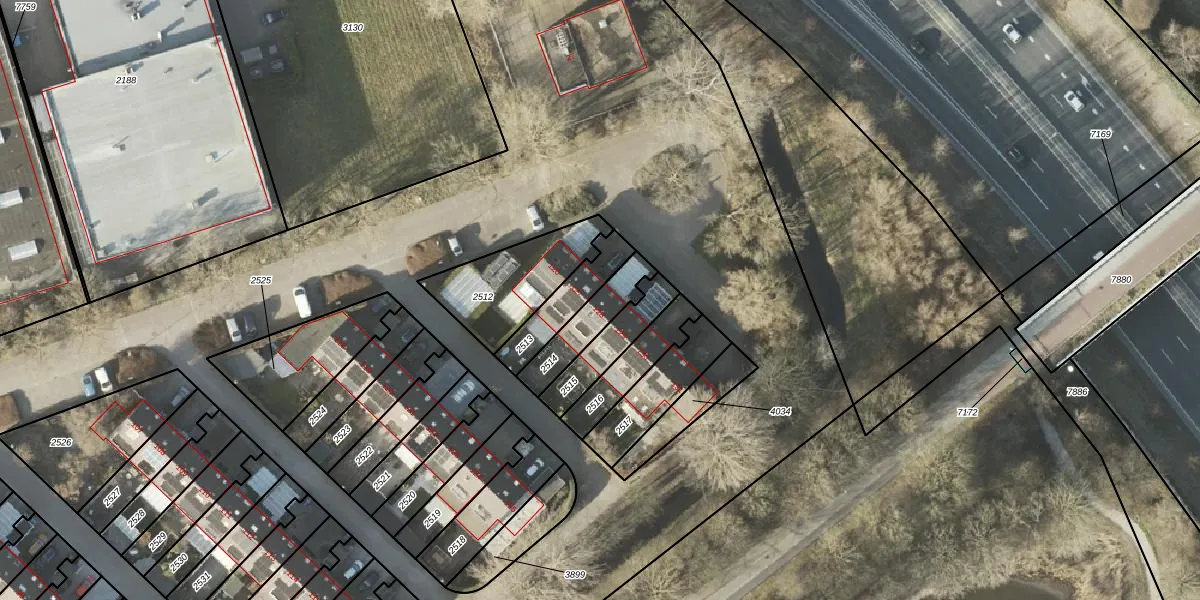 Gebruik de zoekbalk of klik op een perceel voor informatie over de adressen binnen dit perceel.
