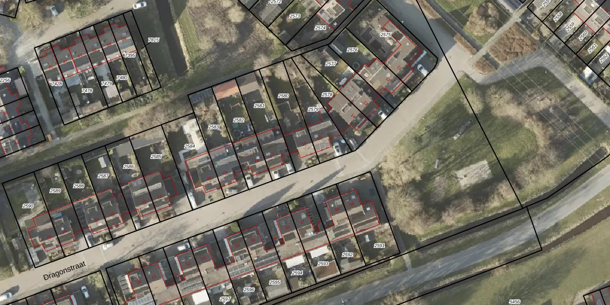Dragonstraat 16 is gelegen op kadastraal perceel GNG01AC2580. Deze kadastrale aanduiding is uniek en wordt gebruikt door het Kadaster om eigendomsrechten en andere zakelijke rechten vast te leggen. Het perceel maakt onderdeel uit van de kadastrale gemeente Groningen.