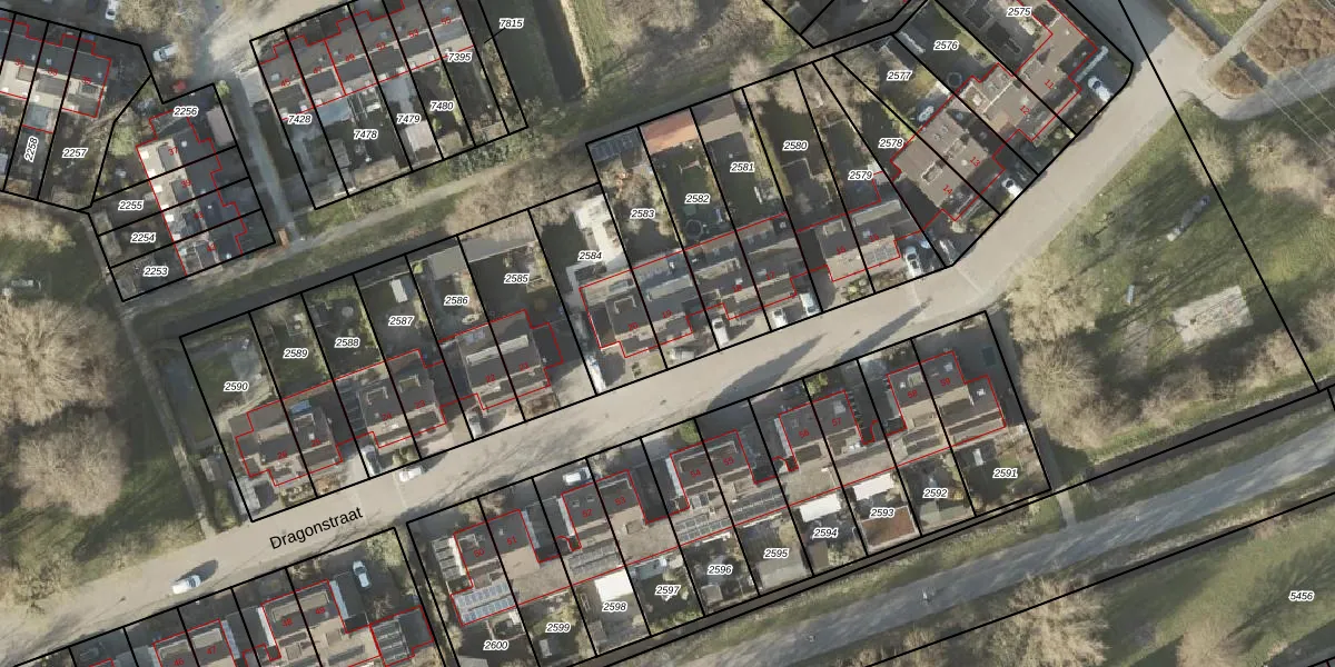 Gebruik de zoekbalk of klik op een perceel voor informatie over de adressen binnen dit perceel.