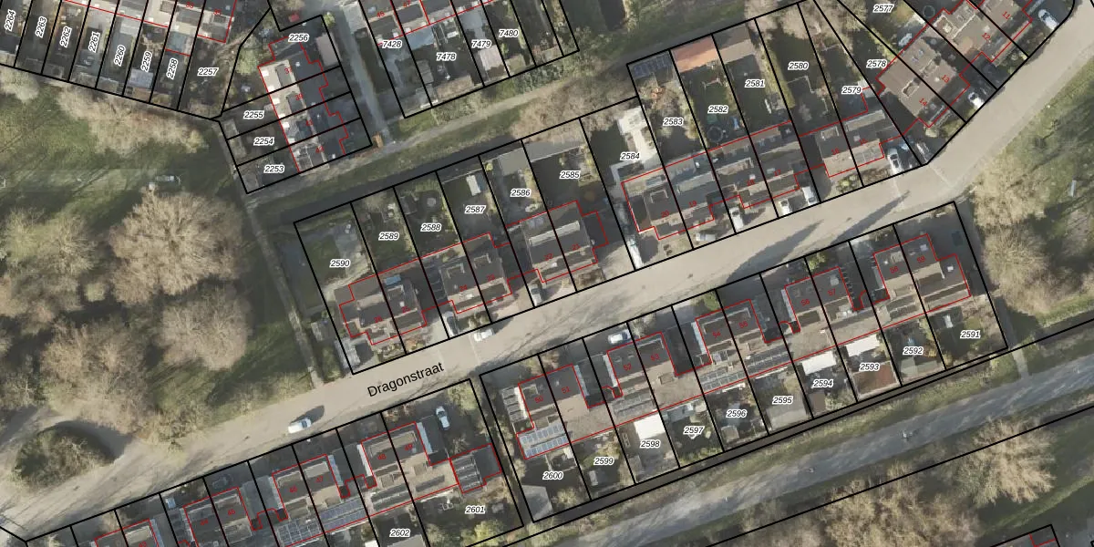 Dragonstraat 22 is gelegen op kadastraal perceel GNG01AC2586. Deze kadastrale aanduiding is uniek en wordt gebruikt door het Kadaster om eigendomsrechten en andere zakelijke rechten vast te leggen. Het perceel maakt onderdeel uit van de kadastrale gemeente Groningen.