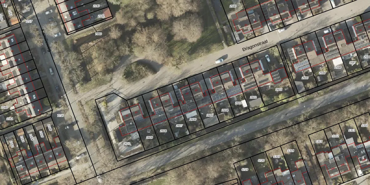Dragonstraat 44 is gelegen op kadastraal perceel GNG01AC2606. Deze kadastrale aanduiding is uniek en wordt gebruikt door het Kadaster om eigendomsrechten en andere zakelijke rechten vast te leggen. Het perceel maakt onderdeel uit van de kadastrale gemeente Groningen.