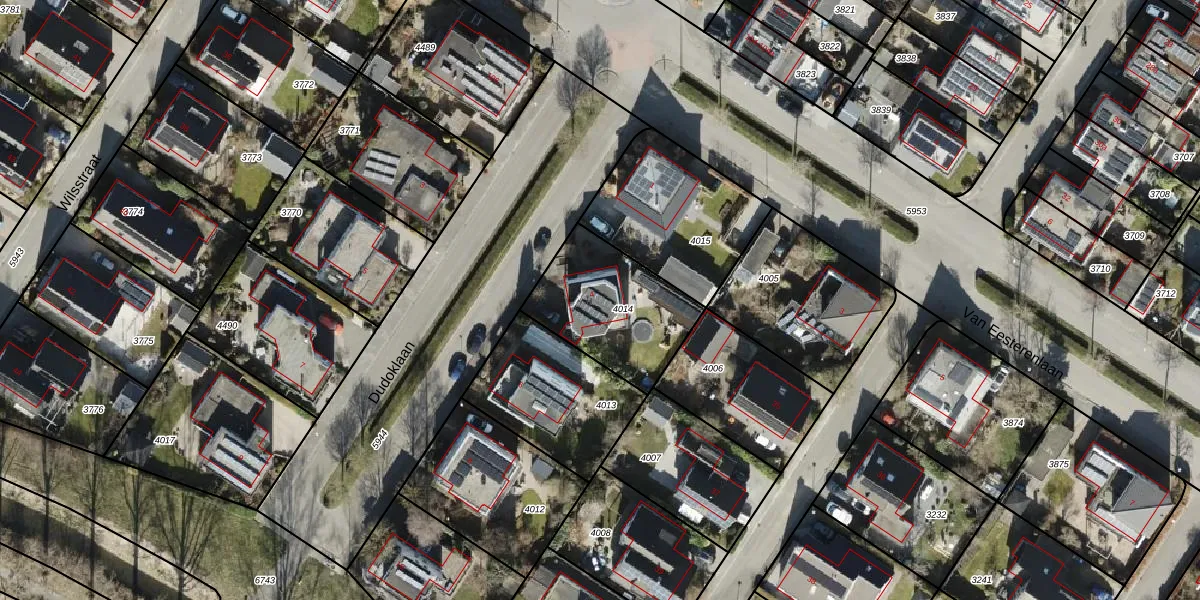 Gebruik de zoekbalk of klik op een perceel voor informatie over de adressen binnen dit perceel.