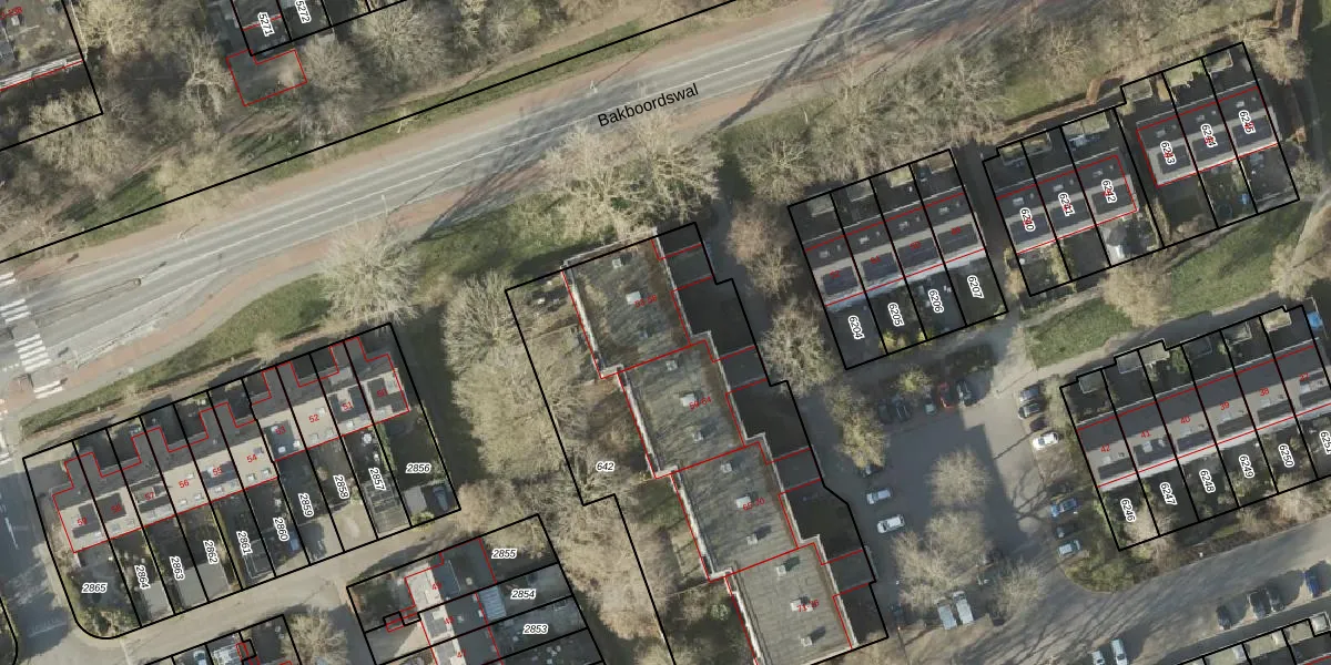 Het adres ligt op het perceel GNG01-AC-642, dat zich in de kadastrale gemeente Groningen bevindt. Het perceel is kleiner dan gemiddeld in Groningen. Het perceel is 2201 m² groot, terwijl het gemiddelde ligt op 2461,56 m². De grootste perceeloppervlakte in de kadastrale gemeente is 1,25 km². De kleinste oppervlakte bedraagt 0 m². Op het perceel zijn 24 adressen aanwezig. De huidige grenzen van het perceel zijn digitaal in de Basisregistratie Kadaster (BRK) geregistreerd op 14-11-1997.