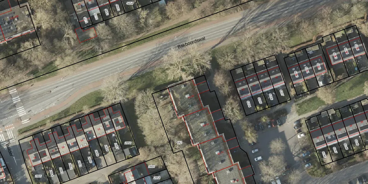 Het perceel waarop Dukdalf 56 staat heeft een oppervlakte van 2201 m². Dit is een zeer groot perceel. De perceeloppervlakte wordt geregistreerd door het Kadaster. Gedetailleerde informatie over de maten van dit perceel kunt u vinden in het rapport Kadastrale kaart met maatvoering van Dukdalf 56.