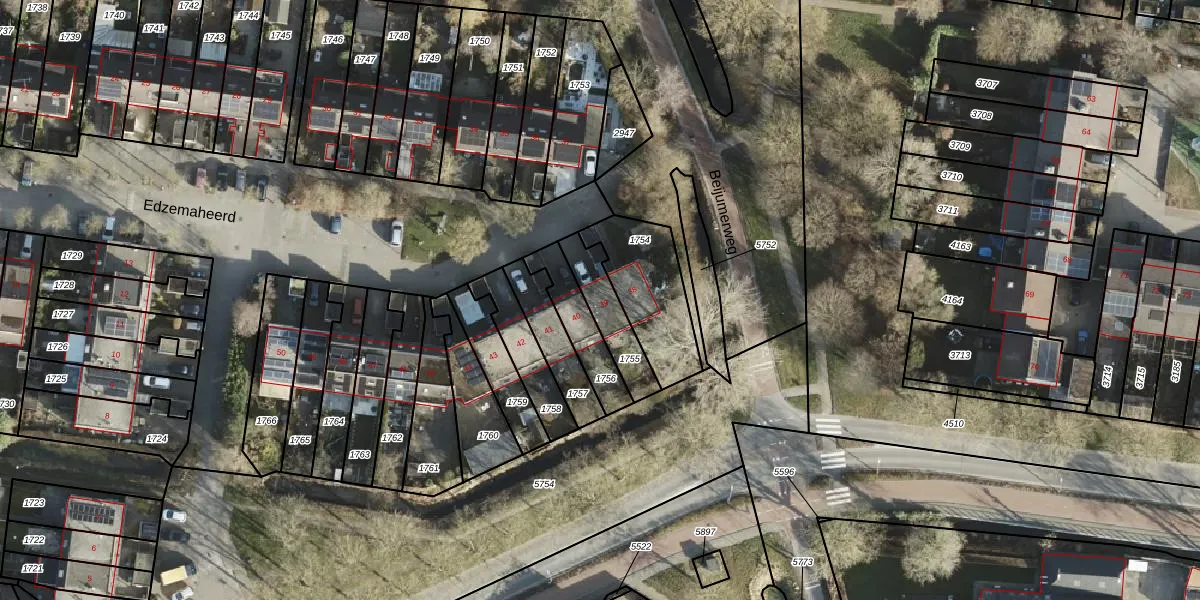 Edzemaheerd 39 is gelegen op kadastraal perceel GNG01AB1755. Deze kadastrale aanduiding is uniek en wordt gebruikt door het Kadaster om eigendomsrechten en andere zakelijke rechten vast te leggen. Het perceel maakt onderdeel uit van de kadastrale gemeente Groningen.