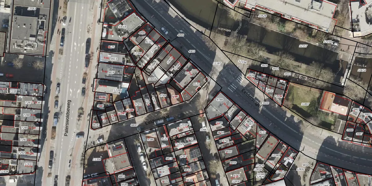 Eelderstraat 1-b is gelegen op kadastraal perceel GNG00C8120. Deze kadastrale aanduiding is uniek en wordt gebruikt door het Kadaster om eigendomsrechten en andere zakelijke rechten vast te leggen. Het perceel maakt onderdeel uit van de kadastrale gemeente Groningen.