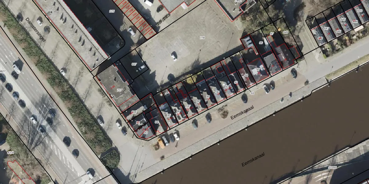 Eemskanaal 10-2 is gelegen op kadastraal perceel GNG00P87. Deze kadastrale aanduiding is uniek en wordt gebruikt door het Kadaster om eigendomsrechten en andere zakelijke rechten vast te leggen. Het perceel maakt onderdeel uit van de kadastrale gemeente Groningen.
