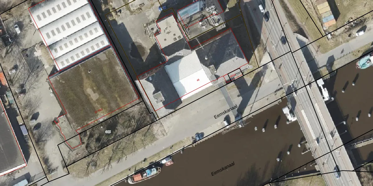 Het perceel waarop Eemskanaal 48 staat heeft een oppervlakte van 2898 m². Dit is een zeer groot perceel. De perceeloppervlakte wordt geregistreerd door het Kadaster. Gedetailleerde informatie over de maten van dit perceel kunt u vinden in het rapport Kadastrale kaart met maatvoering van Eemskanaal 48.