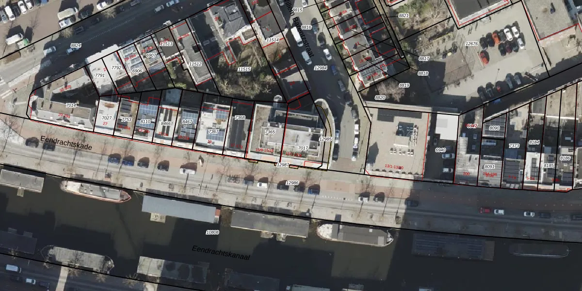 Het perceel waarop Eendrachtskade 15-2 staat heeft een oppervlakte van 302 m². Dit is een groot perceel. De perceeloppervlakte wordt geregistreerd door het Kadaster. Gedetailleerde informatie over de maten van dit perceel kunt u vinden in het rapport Kadastrale kaart met maatvoering van Eendrachtskade 15-2.