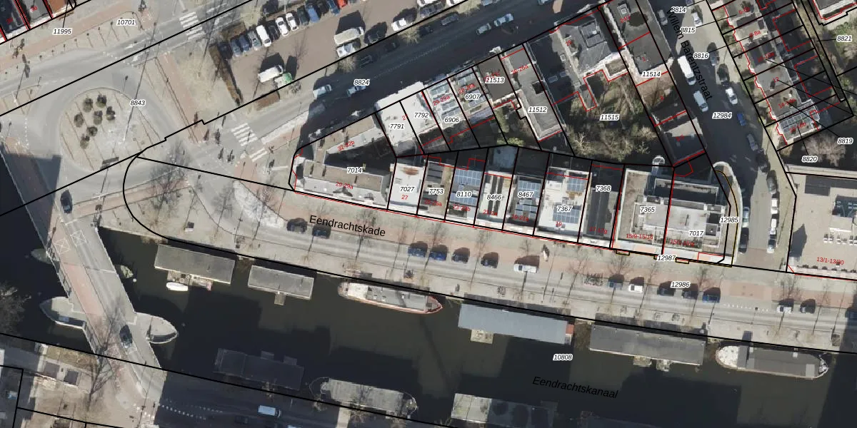 Eendrachtskade 25 is gelegen op kadastraal perceel GNG00C7753. Deze kadastrale aanduiding is uniek en wordt gebruikt door het Kadaster om eigendomsrechten en andere zakelijke rechten vast te leggen. Het perceel maakt onderdeel uit van de kadastrale gemeente Groningen.