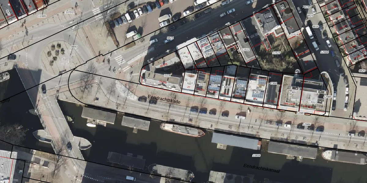Het perceel waarop Eendrachtskade 27 staat heeft een oppervlakte van 95 m². Dit is een klein perceel. De perceeloppervlakte wordt geregistreerd door het Kadaster. Gedetailleerde informatie over de maten van dit perceel kunt u vinden in het rapport Kadastrale kaart met maatvoering van Eendrachtskade 27.