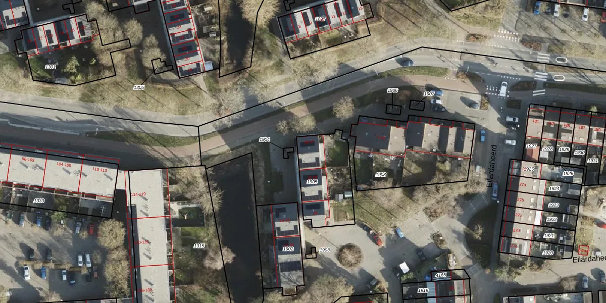 Het perceel waarop Eilardaheerd 15 staat heeft een oppervlakte van 501 m². Dit is een groot perceel. De perceeloppervlakte wordt geregistreerd door het Kadaster. Gedetailleerde informatie over de maten van dit perceel kunt u vinden in het rapport Kadastrale kaart met maatvoering van Eilardaheerd 15.