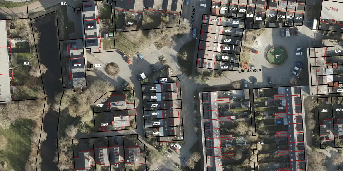 Gebruik de zoekbalk of klik op een perceel voor informatie over de adressen binnen dit perceel.