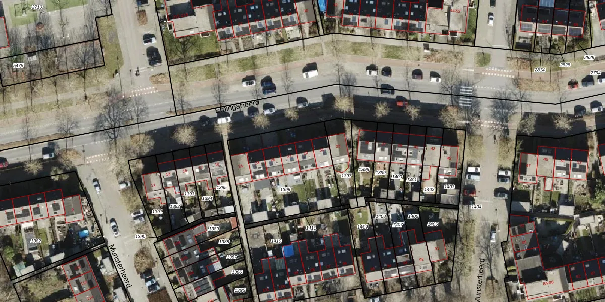 Emingaheerd 29 is gelegen op kadastraal perceel GNG01AB1396. Deze kadastrale aanduiding is uniek en wordt gebruikt door het Kadaster om eigendomsrechten en andere zakelijke rechten vast te leggen. Het perceel maakt onderdeel uit van de kadastrale gemeente Groningen.