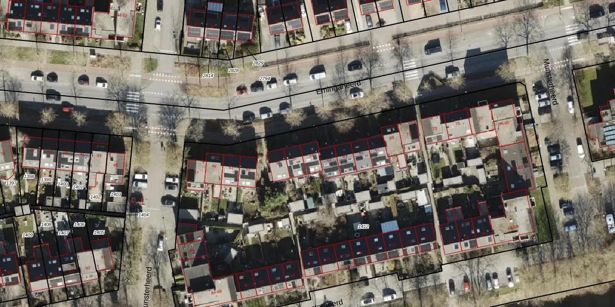 Emingaheerd 59 is gelegen op kadastraal perceel GNG01AB1412. Deze kadastrale aanduiding is uniek en wordt gebruikt door het Kadaster om eigendomsrechten en andere zakelijke rechten vast te leggen. Het perceel maakt onderdeel uit van de kadastrale gemeente Groningen.