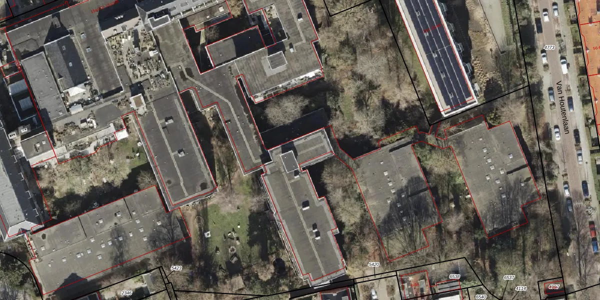 Het perceel waarop Emmastraat 15-h-313 staat heeft een oppervlakte van 2,0 ha. Dit is een zeer groot perceel. De perceeloppervlakte wordt geregistreerd door het Kadaster. Gedetailleerde informatie over de maten van dit perceel kunt u vinden in het rapport Kadastrale kaart met maatvoering van Emmastraat 15-h-313.