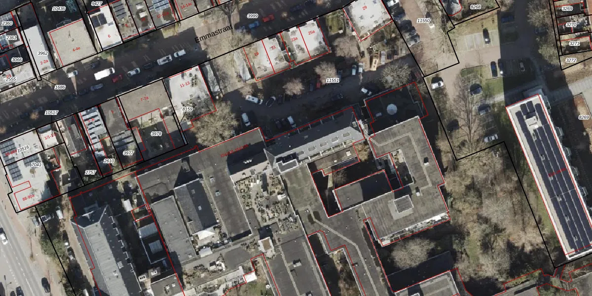 Het perceel waarop Emmastraat 15-f-103 staat heeft een oppervlakte van 2,0 ha. Dit is een zeer groot perceel. De perceeloppervlakte wordt geregistreerd door het Kadaster. Gedetailleerde informatie over de maten van dit perceel kunt u vinden in het rapport Kadastrale kaart met maatvoering van Emmastraat 15-f-103.