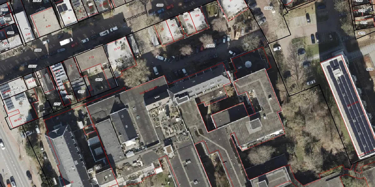 Het perceel waarop Emmastraat 15-f-105 staat heeft een oppervlakte van 2,0 ha. Dit is een zeer groot perceel. De perceeloppervlakte wordt geregistreerd door het Kadaster. Gedetailleerde informatie over de maten van dit perceel kunt u vinden in het rapport Kadastrale kaart met maatvoering van Emmastraat 15-f-105.
