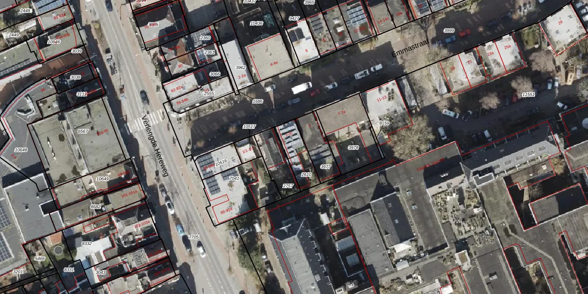 Het perceel waarop Emmastraat 3-b staat heeft een oppervlakte van 178 m². Dit is een middelgroot perceel. De perceeloppervlakte wordt geregistreerd door het Kadaster. Gedetailleerde informatie over de maten van dit perceel kunt u vinden in het rapport Kadastrale kaart met maatvoering van Emmastraat 3-b.