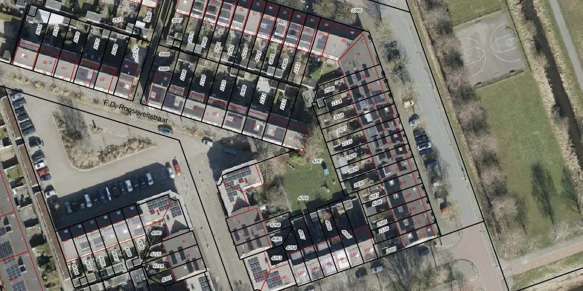 Het perceel waarop F.D. Rooseveltstraat 15 staat heeft een oppervlakte van 1557 m². Dit is een zeer groot perceel. De perceeloppervlakte wordt geregistreerd door het Kadaster. Gedetailleerde informatie over de maten van dit perceel kunt u vinden in het rapport Kadastrale kaart met maatvoering van F.D. Rooseveltstraat 15.
