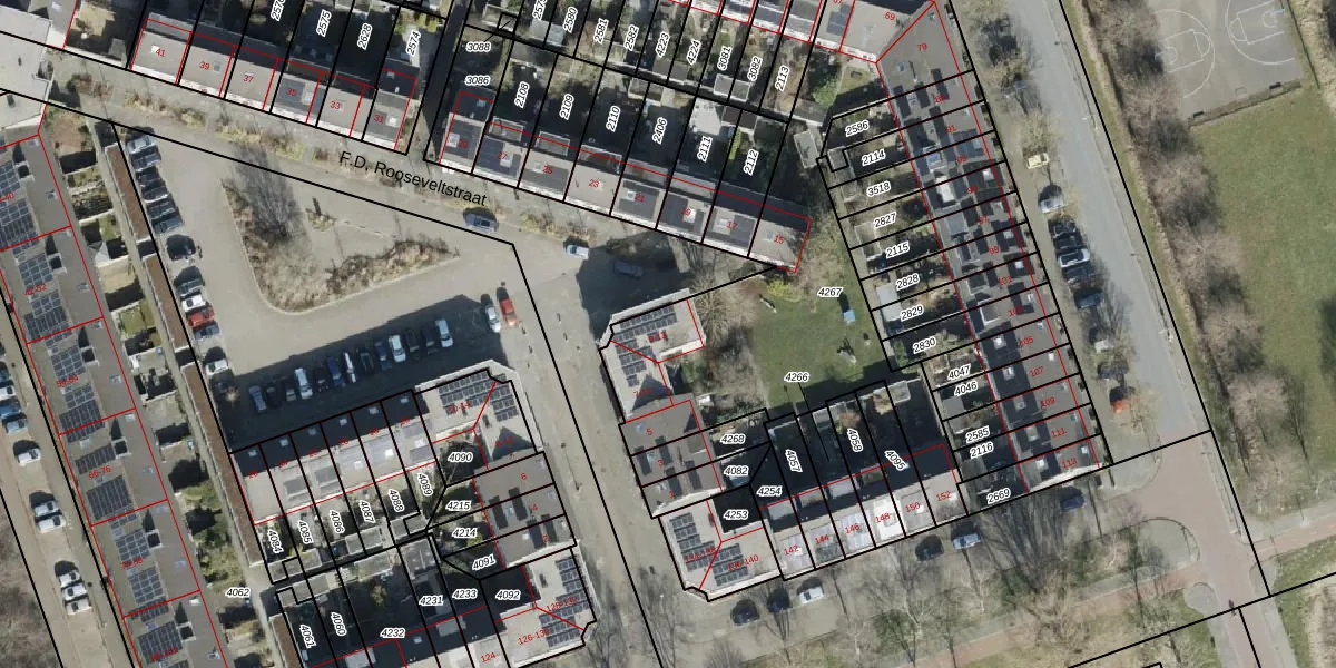 Het perceel waarop F.D. Rooseveltstraat 9 staat heeft een oppervlakte van 1557 m². Dit is een zeer groot perceel. De perceeloppervlakte wordt geregistreerd door het Kadaster. Gedetailleerde informatie over de maten van dit perceel kunt u vinden in het rapport Kadastrale kaart met maatvoering van F.D. Rooseveltstraat 9.