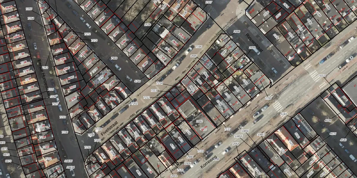 Het perceel waarop Fivelstraat 25 staat heeft een oppervlakte van 20 m². Dit is een klein perceel. De perceeloppervlakte wordt geregistreerd door het Kadaster. Gedetailleerde informatie over de maten van dit perceel kunt u vinden in het rapport Kadastrale kaart met maatvoering van Fivelstraat 25.