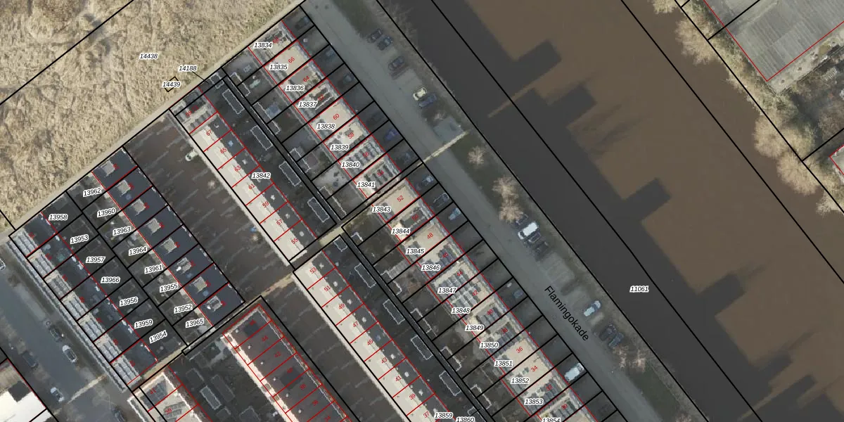 Flamingokade 50 is gelegen op kadastraal perceel GNG00A13844. Deze kadastrale aanduiding is uniek en wordt gebruikt door het Kadaster om eigendomsrechten en andere zakelijke rechten vast te leggen. Het perceel maakt onderdeel uit van de kadastrale gemeente Groningen.