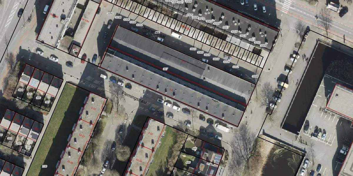 Het perceel waarop Flemingstraat 3-a staat heeft een oppervlakte van 2214 m². Dit is een zeer groot perceel. De perceeloppervlakte wordt geregistreerd door het Kadaster. Gedetailleerde informatie over de maten van dit perceel kunt u vinden in het rapport Kadastrale kaart met maatvoering van Flemingstraat 3-a.
