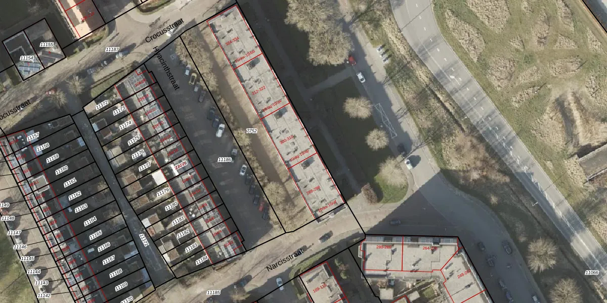 Het perceel waarop Florakade 310 staat heeft een oppervlakte van 1638 m². Dit is een zeer groot perceel. De perceeloppervlakte wordt geregistreerd door het Kadaster. Gedetailleerde informatie over de maten van dit perceel kunt u vinden in het rapport Kadastrale kaart met maatvoering van Florakade 310.
