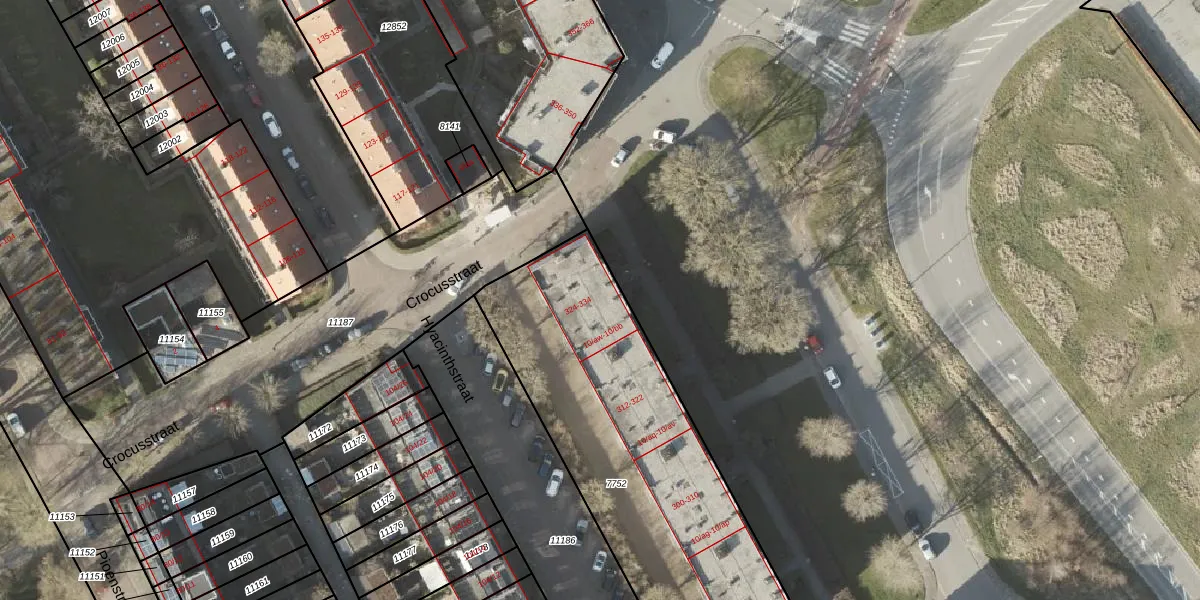 Het perceel waarop Florakade 332 staat heeft een oppervlakte van 1638 m². Dit is een zeer groot perceel. De perceeloppervlakte wordt geregistreerd door het Kadaster. Gedetailleerde informatie over de maten van dit perceel kunt u vinden in het rapport Kadastrale kaart met maatvoering van Florakade 332.