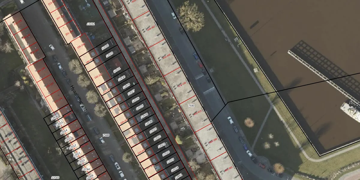 Het perceel waarop het adres ligt is GNG00-A-7590. De afkorting 'GNG00' staat voor kadastrale gemeente Groningen. De gemiddelde perceeloppervlakte in de kadastrale gemeente Groningen is 771,11 m². Dit perceel is met zijn 4062 m² dus groter dan gemiddeld. De grootste perceeloppervlakte in de kadastrale gemeente is 31,8 ha. De kleinste oppervlakte bedraagt 0 m². Op het perceel liggen in totaal 80 adressen. De laatste wijziging in het de Basisregistratie Kadaster (BRK) was op 04-02-2013.