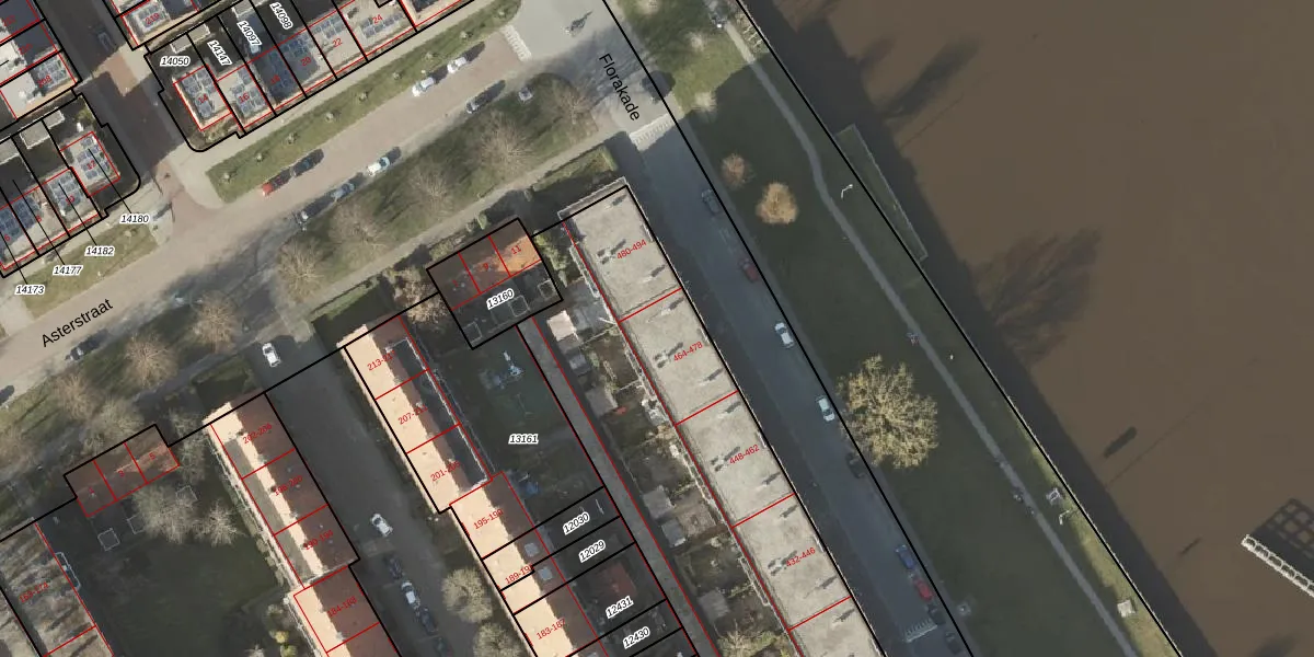Het perceel waarop Florakade 472 staat heeft een oppervlakte van 4062 m². Dit is een zeer groot perceel. De perceeloppervlakte wordt geregistreerd door het Kadaster. Gedetailleerde informatie over de maten van dit perceel kunt u vinden in het rapport Kadastrale kaart met maatvoering van Florakade 472.