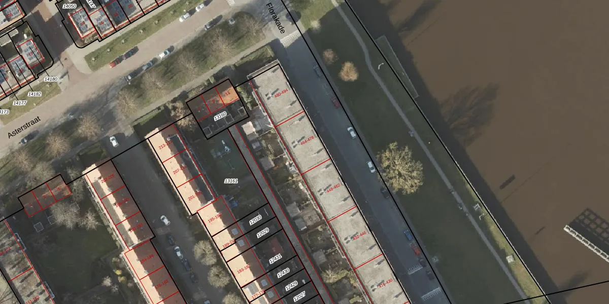 Het perceel waarop Florakade 478 staat heeft een oppervlakte van 4062 m². Dit is een zeer groot perceel. De perceeloppervlakte wordt geregistreerd door het Kadaster. Gedetailleerde informatie over de maten van dit perceel kunt u vinden in het rapport Kadastrale kaart met maatvoering van Florakade 478.