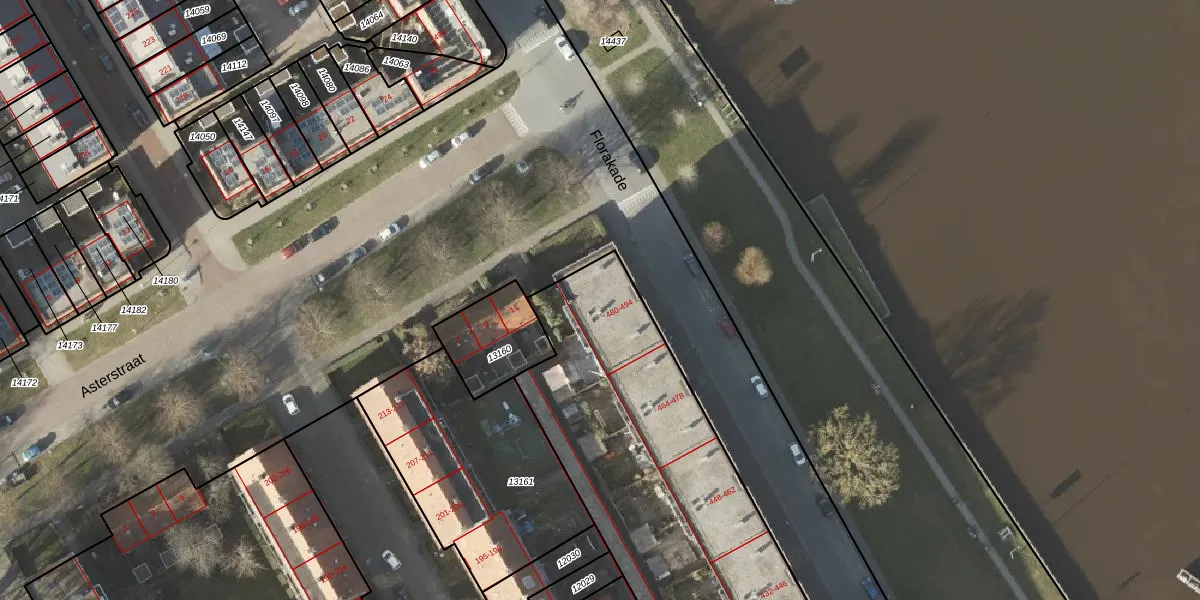 Het perceel waarop Florakade 490 staat heeft een oppervlakte van 4062 m². Dit is een zeer groot perceel. De perceeloppervlakte wordt geregistreerd door het Kadaster. Gedetailleerde informatie over de maten van dit perceel kunt u vinden in het rapport Kadastrale kaart met maatvoering van Florakade 490.