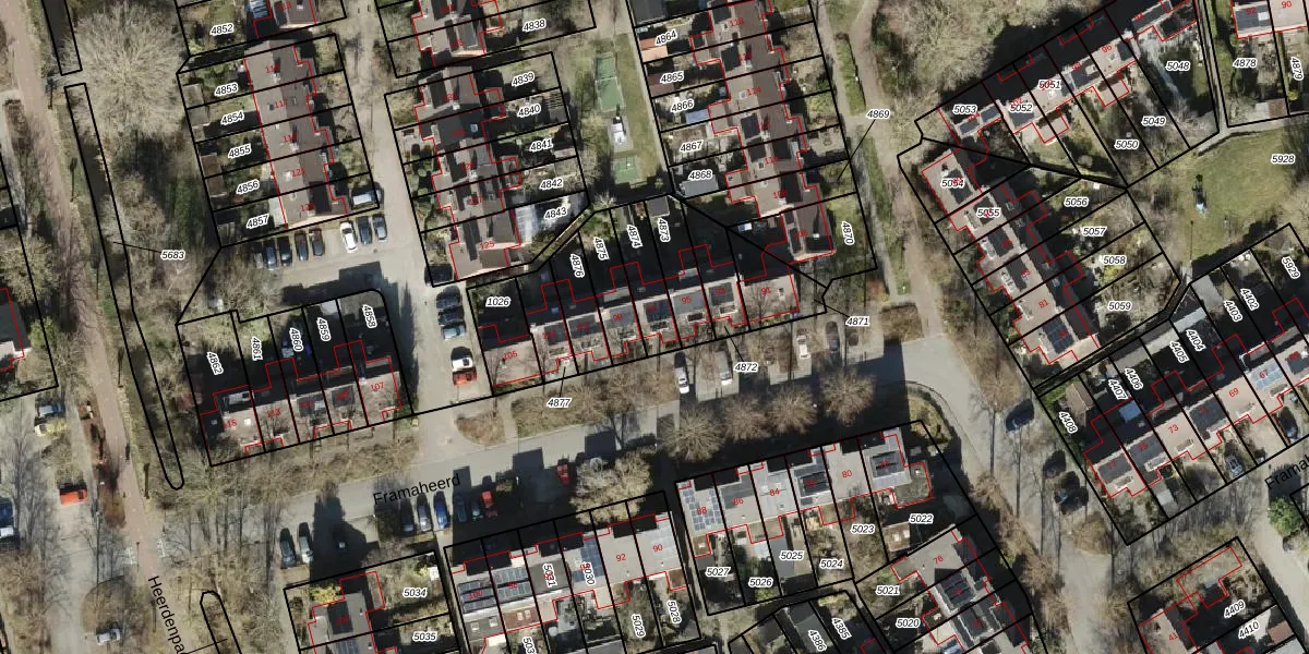 Framaheerd 97 is gelegen op kadastraal perceel GNG01AB4874. Deze kadastrale aanduiding is uniek en wordt gebruikt door het Kadaster om eigendomsrechten en andere zakelijke rechten vast te leggen. Het perceel maakt onderdeel uit van de kadastrale gemeente Groningen.