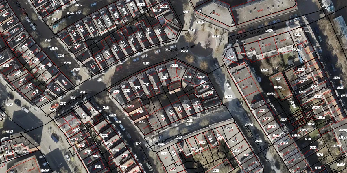 Frederiksplein 1-c is gelegen op kadastraal perceel GNG00B6116. Deze kadastrale aanduiding is uniek en wordt gebruikt door het Kadaster om eigendomsrechten en andere zakelijke rechten vast te leggen. Het perceel maakt onderdeel uit van de kadastrale gemeente Groningen.
