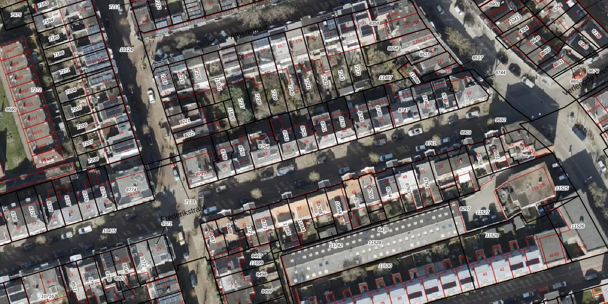 Het perceel waarop Frederikstraat 36 staat heeft een oppervlakte van 92 m². Dit is een klein perceel. De perceeloppervlakte wordt geregistreerd door het Kadaster. Gedetailleerde informatie over de maten van dit perceel kunt u vinden in het rapport Kadastrale kaart met maatvoering van Frederikstraat 36.